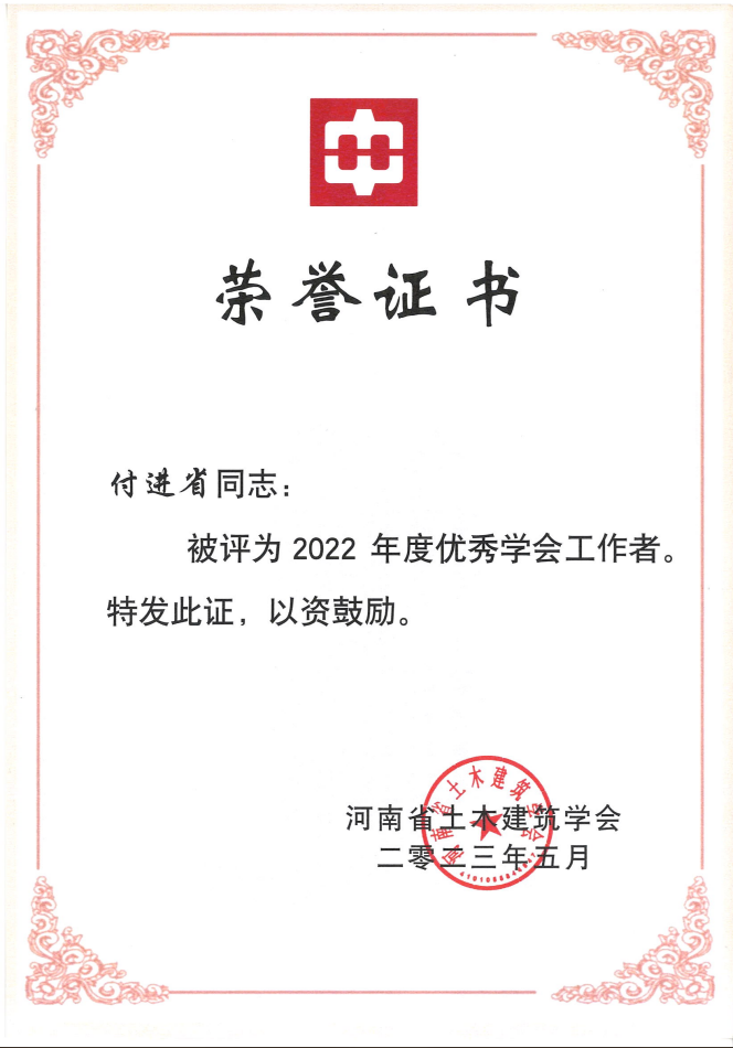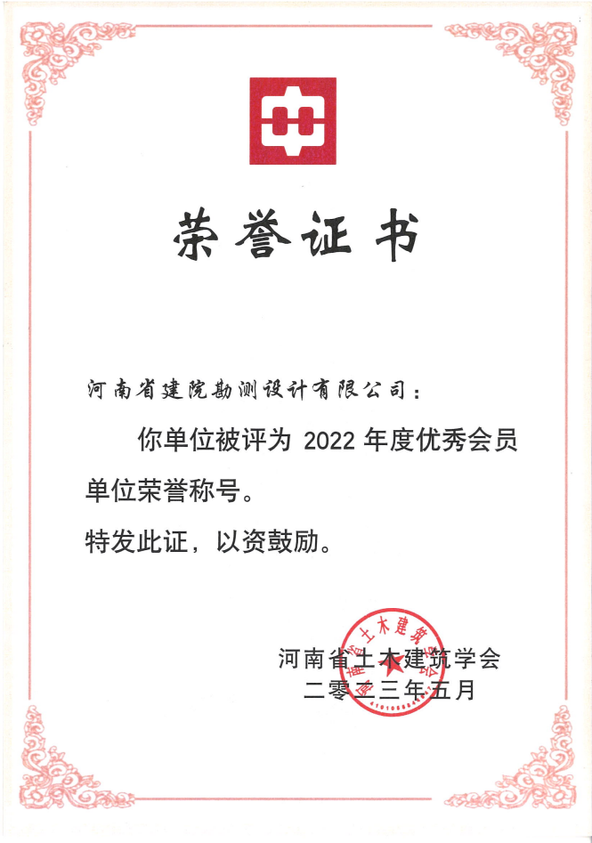 近日,河南省土木建筑学会发布《关于通报表彰河南省土木建筑学会2022 年度优秀会员单位、个人会员及优秀学会工作者的决定》,我公司荣获学会“2022年度优秀会员单位”荣誉称号;公司总经理付进省同志荣获“2022年度优秀学会工作者”