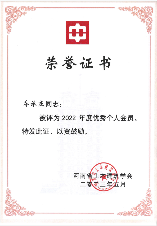;公司岩土专业总工程师乔承杰同志荣获“2022年度优秀个人会员”