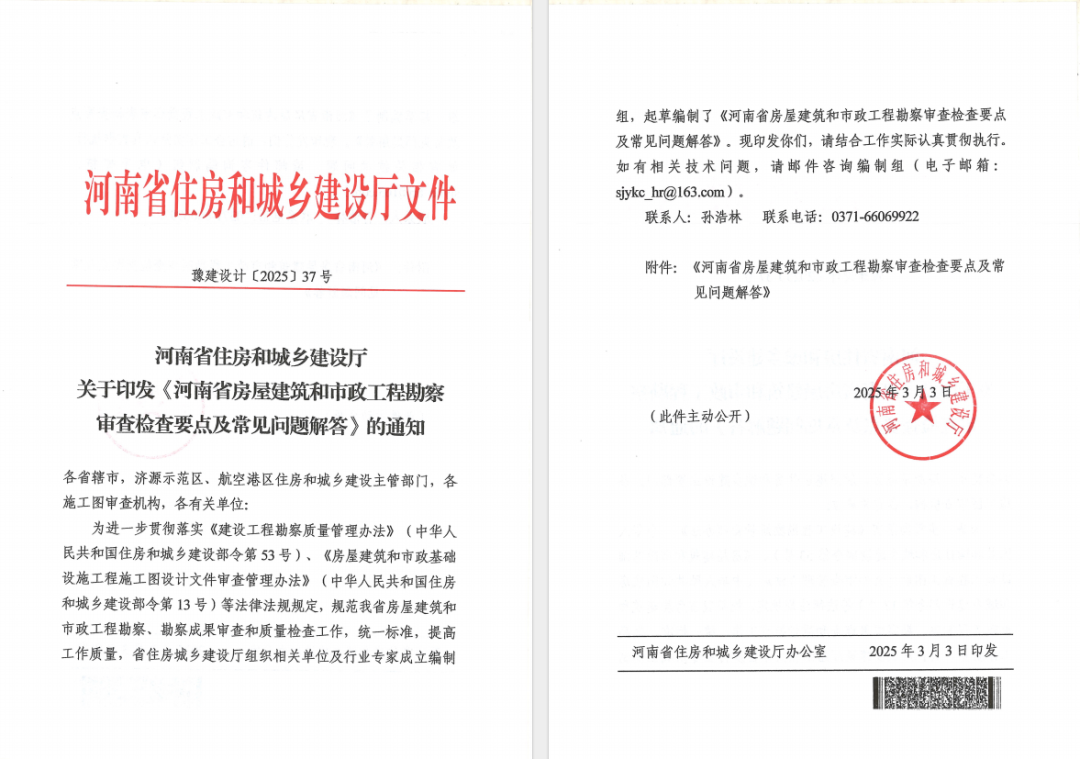 勘测动态 | 热烈庆祝《河南省房屋建筑和市政工程勘察审查检查要点及常见问题解答》正式发布