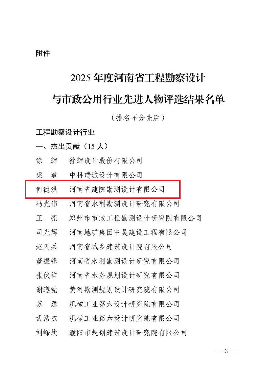 勘测喜报 | 我公司何德洪同志、杨文强同志荣获“2025年度河南省工程勘察设计与市政公用行业先进人物”