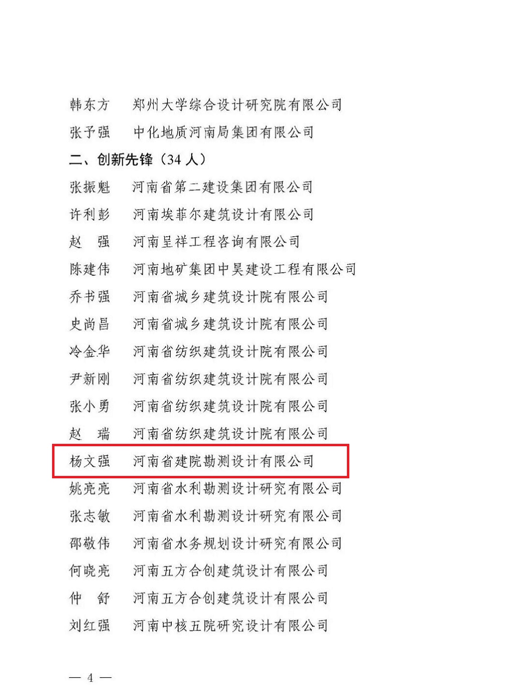 9月9日,河南省工程勘察设计行业协会公布了“2025年度河南省工程勘察设计与市政公用行业先进人物”评选结果名单。勘测公司总工程师何德洪同志荣获2025工程勘察设计行业“杰出贡献”称号;副总经理杨文强同志荣获2025工程勘察设计行业“创新先锋”称号。